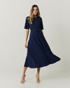 Esse vestido midi em alfaiataria possui um caimento impecável e moderno. Ele traz uma proposta elegante, mas prática, perfeito para ocasiões que pedem sofisticação sem abrir mão do conforto.